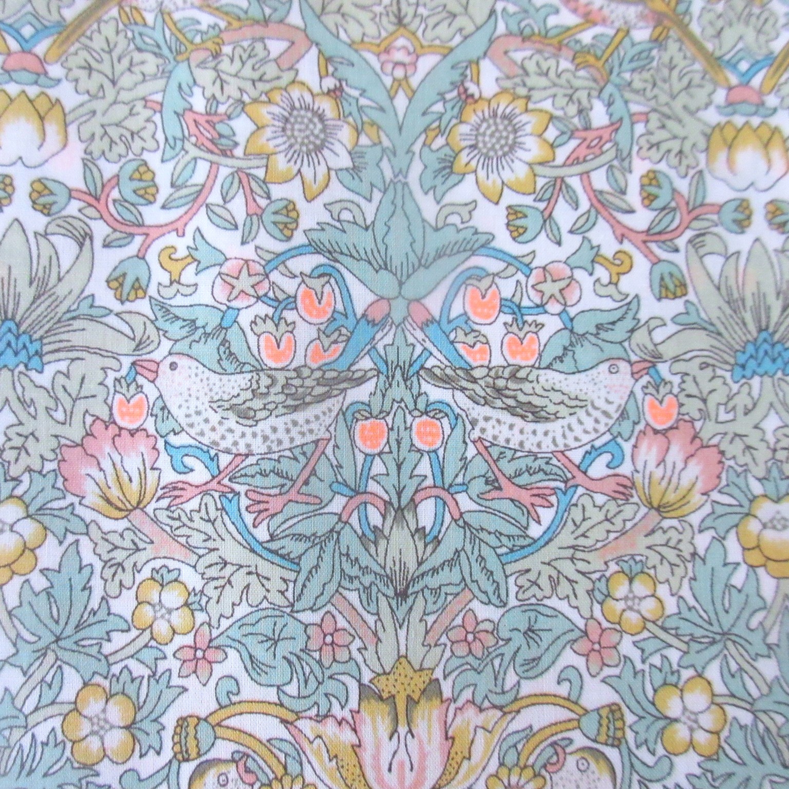 英国の思想家、詩人、デザイナー、作家、画家でデザイン史上に多大なる影響を与えた、ウィリアム・モリス。「イチゴ泥棒」という名前のこのデザインは、モリス自身がイチゴを育てようとしたときに、鳥に食べられてしまった経験からインスピレーションを得て1883年に制作されました。1979年、リバティ社が調度品のファブリックとしてプリントし、その後タナローン用に柄を縮小しデザインを調整。1995年リバティ社のクラシックコレクションに加入し、今でも不動の人気を誇っています。