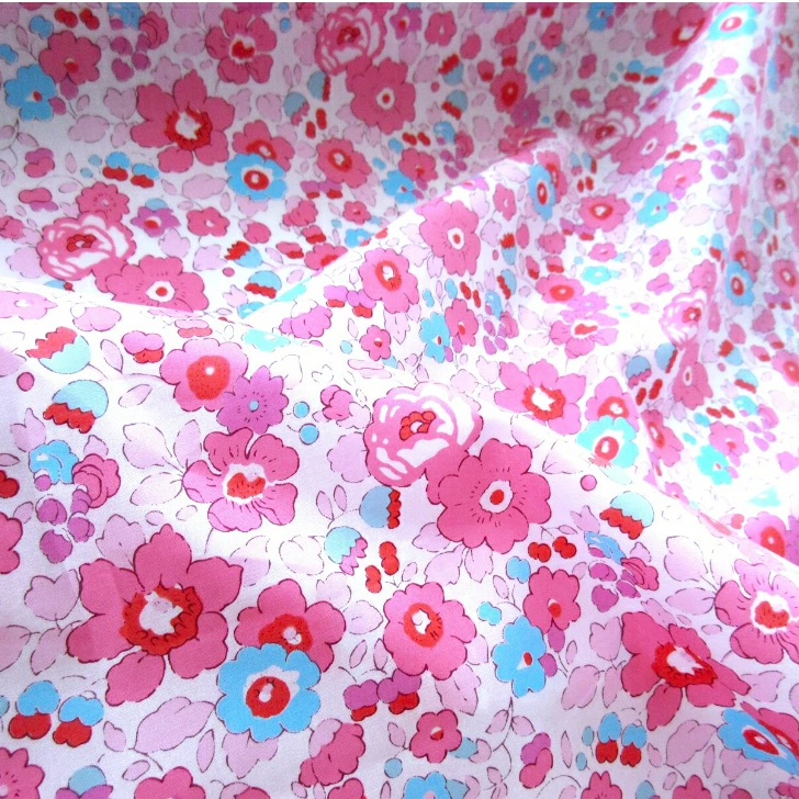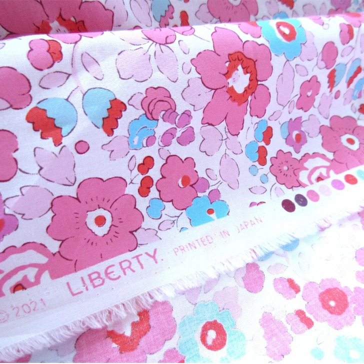 1933年にデザインされたリバティプリントを代表する花柄のひとつです。1982年にクラシックコレクション(輸入定番柄)に加わって以来、様々な配色で版を重ね、ファンを魅了し続けています。誰がデザインしたかについての唯一の手がかりはDSと言うイニシャルだけ。DSはFelicite, Wiltshireなど、リバティの中でも大変人気のある柄を数多く残しており、このBetsyもまた、90年の月日を経てなお、ロングセラーでありトップセラーでもあり、不動の人気柄となっています。