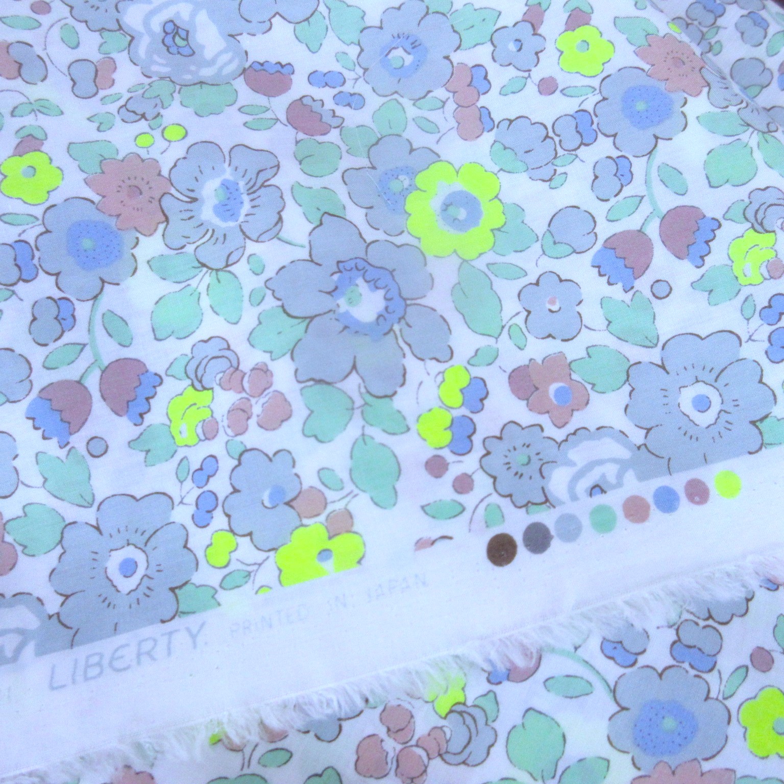 1933年にデザインされたリバティプリントを代表する花柄のひとつです。1982年にクラシックコレクション(輸入定番柄)に加わって以来、様々な配色で版を重ね、ファンを魅了し続けています。誰がデザインしたかについての唯一の手がかりはDSと言うイニシャルだけ。DSはFelicite, Wiltshireなど、リバティの中でも大変人気のある柄を数多く残しており、このBetsyもまた、90年の月日を経てなお、ロングセラーでありトップセラーでもあり、不動の人気柄となっています。