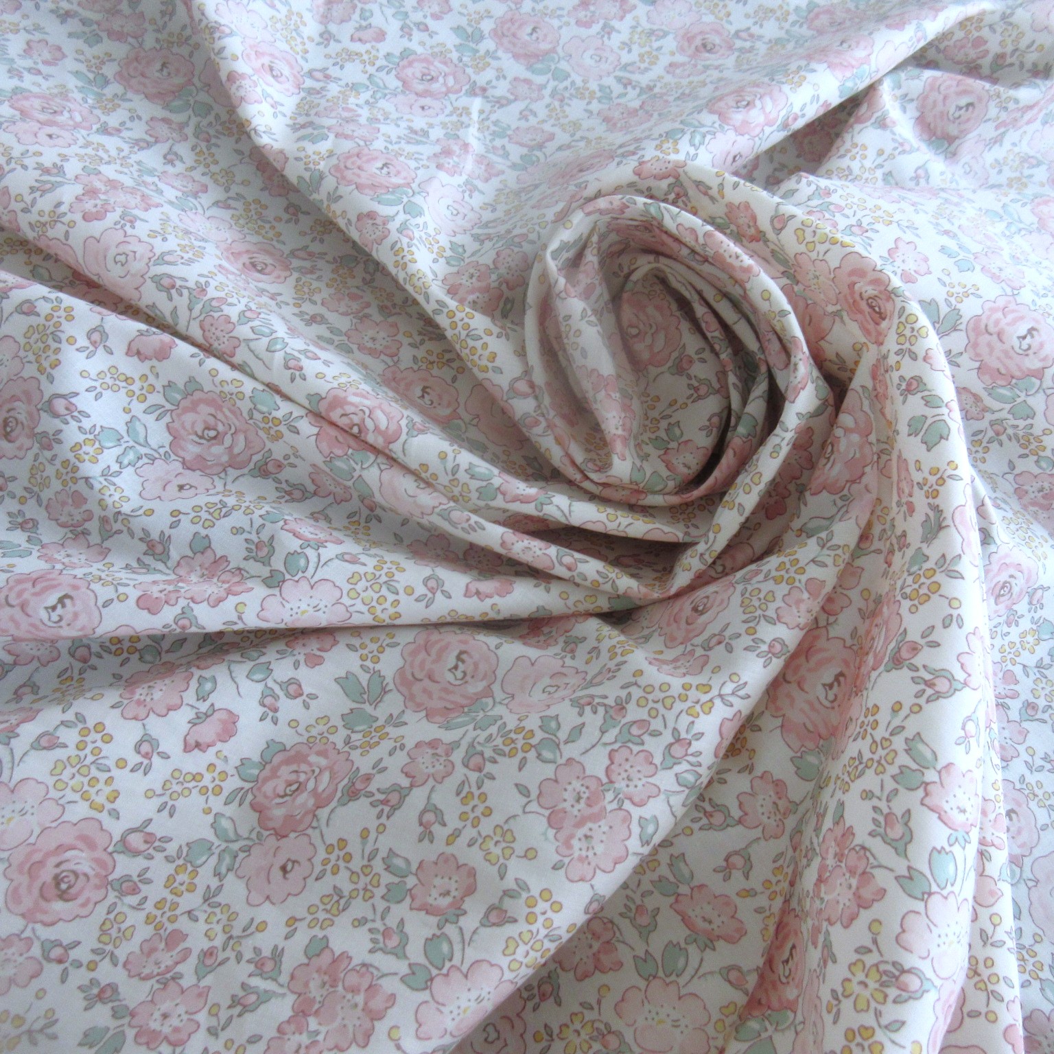 1933年にデザインされたリバティプリントを代表する花柄(薔薇柄)のひとつです。密集した丸みのあるふっくらとしたバラの花々が印象的な柄です。1997年春夏コレクションで復活し、2001年にクラシックコレクション(輸入定番柄)に加わって以来、様々な配色で版を重ね、ファンを魅了し続けています。誰がデザインしたかについての唯一の手がかりはDSと言うイニシャルだけ。DSはBetsy, Wiltshireなど、リバティの中でも大変人気のある柄を数多く残しており、このFeliciteもまた、90年の月日を経てなお、トップセラー&ロングセラーの人気柄となっています。