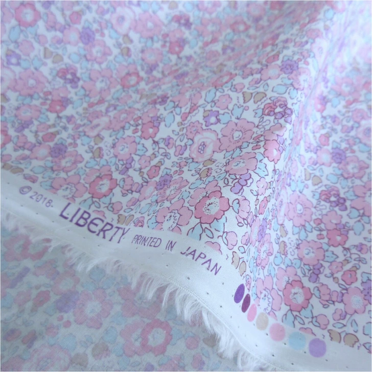 2013年秋冬コレクション最後のテーマ:リバティが誇る様々な花のスタイルを集約した「センス・オブ・リバティ」の中の1柄で、1933年に制作され、リバティのクラシック柄として有名な「Betsy (ベッツィ)」の縮小版です。デザインはそのまま縮小されていますが、配色は1色少なくなっています。小物作りやベビー用にちょうどよいスケールで、今ではBetsyと並ぶ人気柄です。