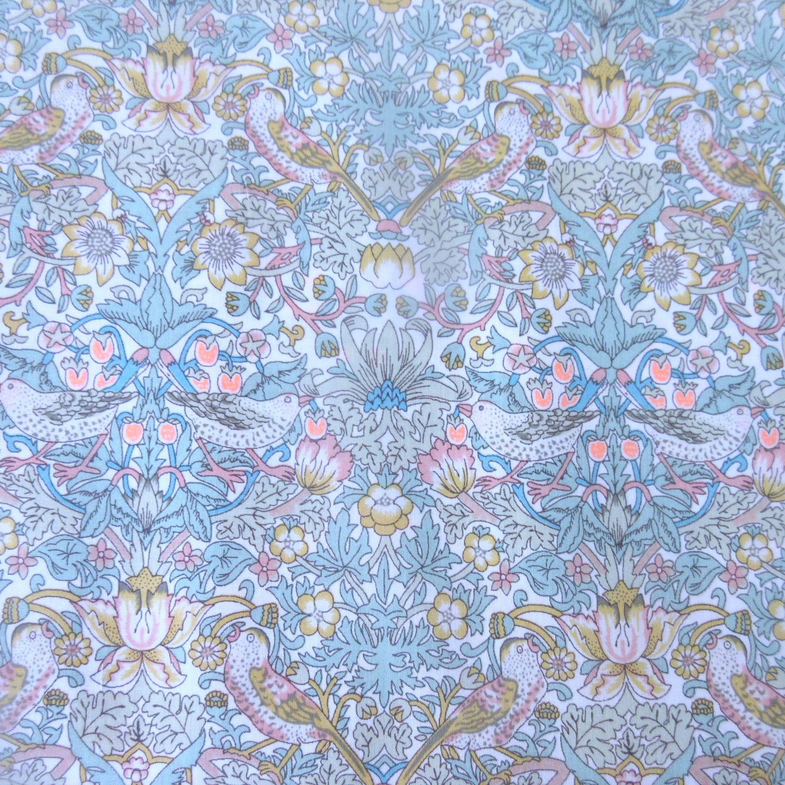 英国の思想家、詩人、デザイナー、作家、画家でデザイン史上に多大なる影響を与えた、ウィリアム・モリス作 ""Strawberry Thief"" を新しい解釈にしたのが、この「Strawberry Thief Spring(ストロベリー・シーフ・スプリング)」。初めてリバティで「イチゴ泥棒」が使われたのは1979年のインテリア・ファブリックでした。その後タナローンのために縮小された典型的なLIBERTY Arts&Craftsのパターンは、さらに2019年新加入のクラシックコレクション(輸入定番柄)、および2020年のエターナルコレクション(国産定番柄)のために明るい背景色に変更され、ストロベリースィーフスプリングが誕生しました。