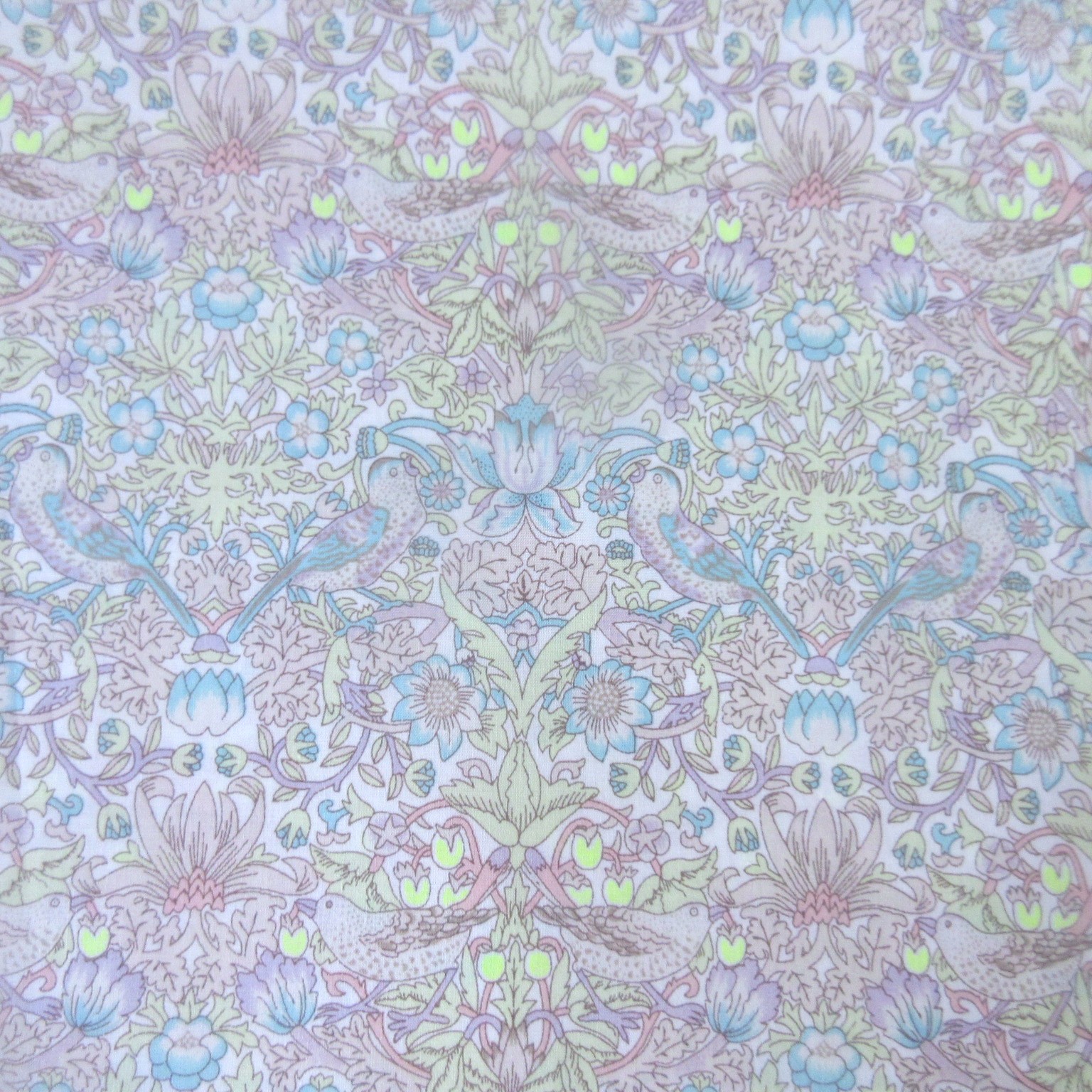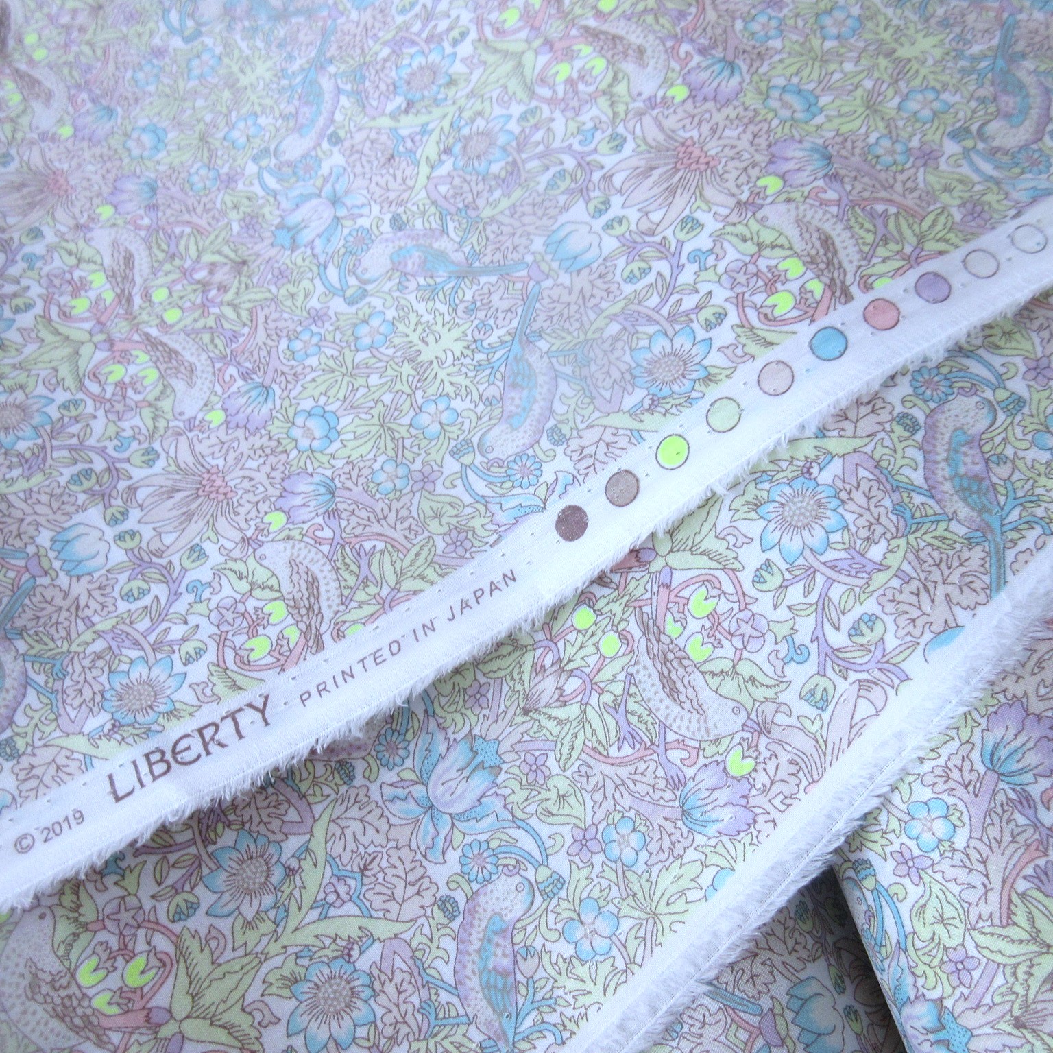 英国の思想家、詩人、デザイナー、作家、画家でデザイン史上に多大なる影響を与えた、ウィリアム・モリス作 ""Strawberry Thief"" を新しい解釈にしたのが、この「Strawberry Thief Spring(ストロベリー・シーフ・スプリング)」。初めてリバティで「イチゴ泥棒」が使われたのは1979年のインテリア・ファブリックでした。その後タナローンのために縮小された典型的なLIBERTY Arts&Craftsのパターンは、さらに2019年新加入のクラシックコレクション(輸入定番柄)、および2020年のエターナルコレクション(国産定番柄)のために明るい背景色に変更され、ストロベリースィーフスプリングが誕生しました。